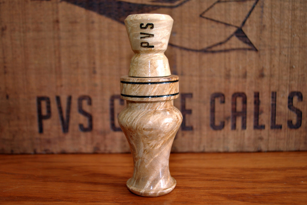 The N0.3 Woody Mk1 is a work horse for calling in wood ducks. Featuring an all stabilized maple burl body with satin oil finish. This call is able to achieve the different range of sounds found with woodies thick in the timber. These calls are made to order.